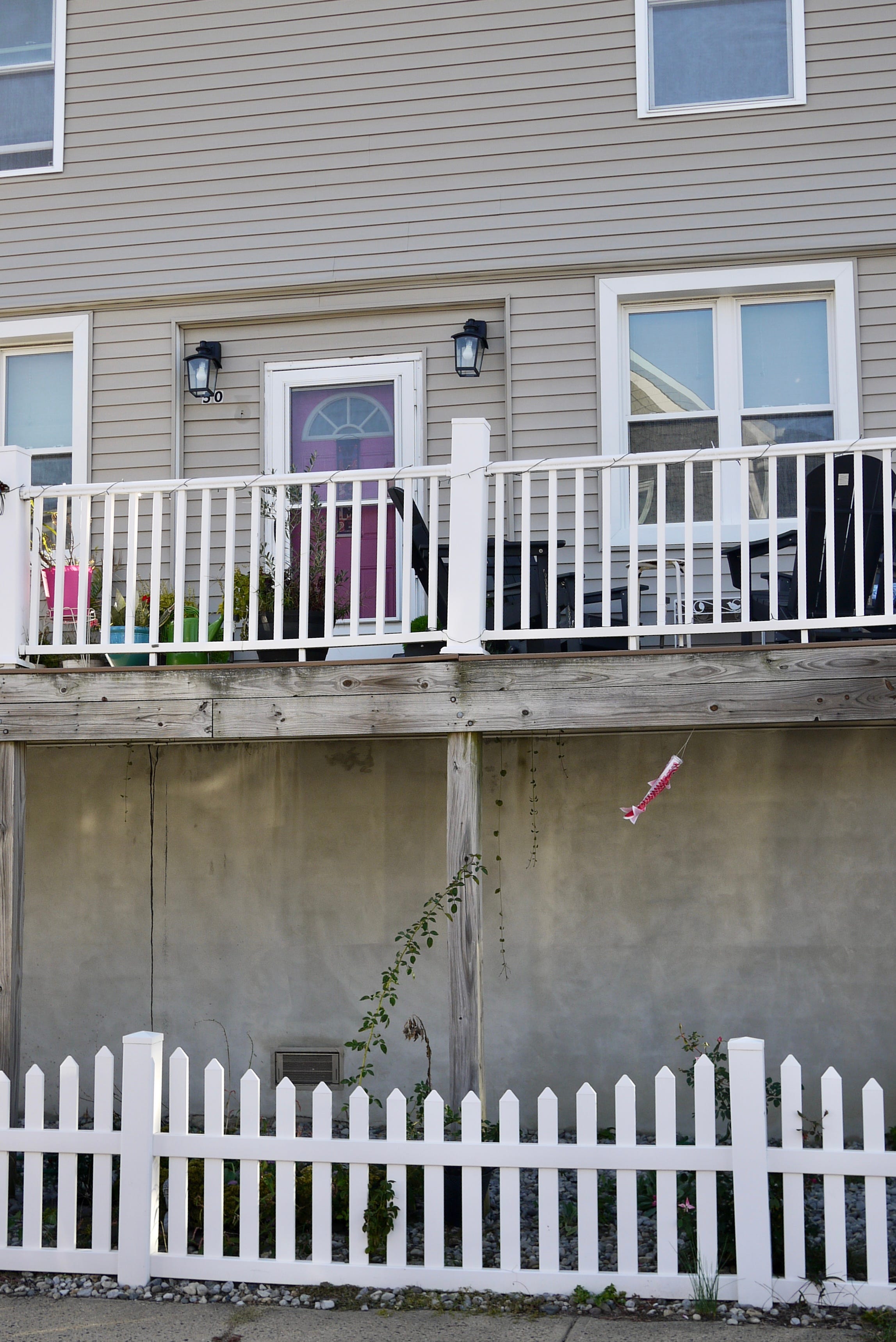 When Hurricane Sandy hit Highlands New Jersey it pushed so much water out of Sandy Hook Bay and into the town that 1,250 of 1,500 homes were destroyed as was much of the downtown business section. So the rebuilt homes are now lifted so that any future flood waters will flow under - not into them.